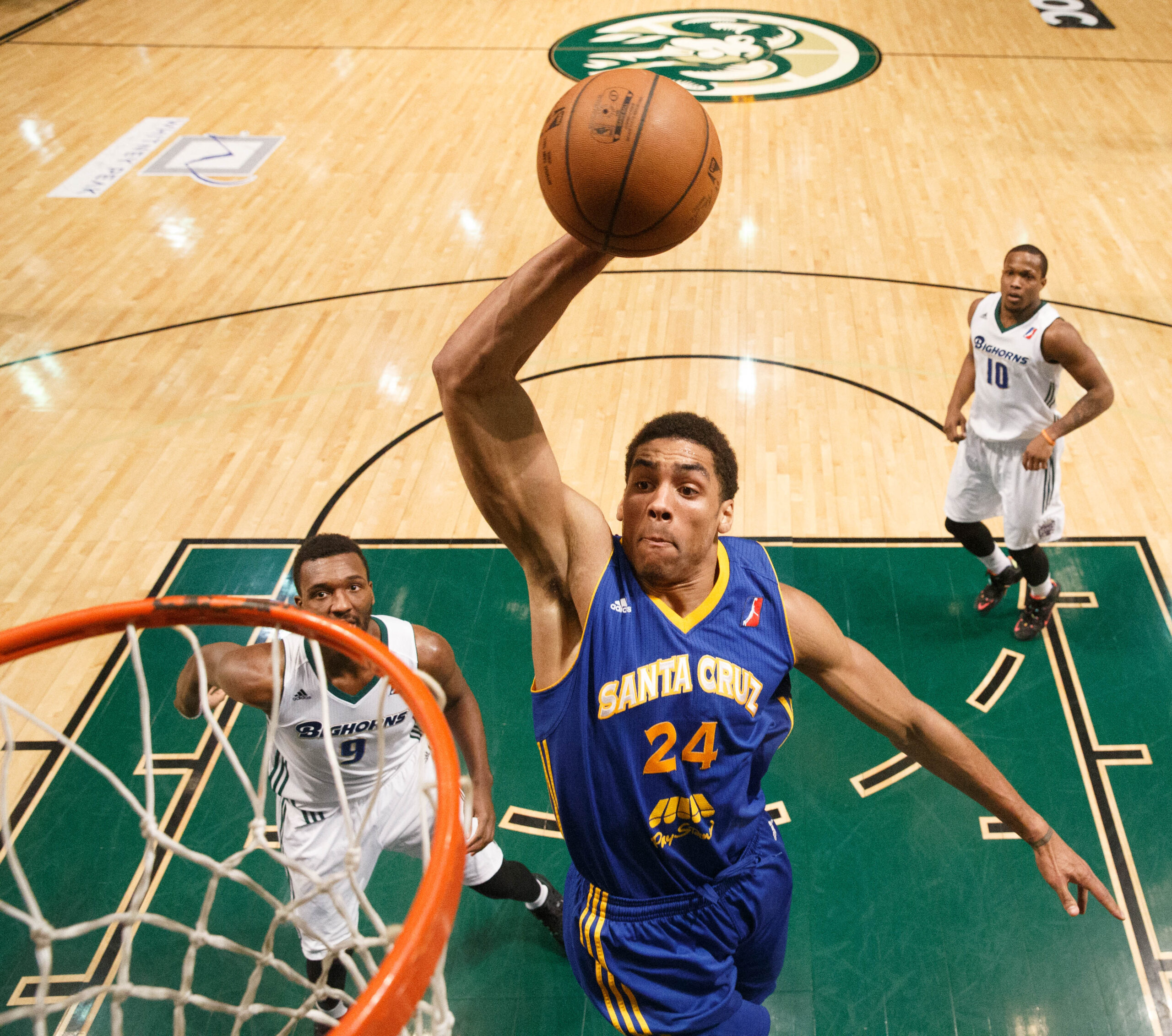 Santa Cruz Warrior JAMES MICHAEL MCADOO (24) dunks during the NBA D-League Basketball game between the Reno Bighorns and the Santa Cruz Warriors at the Reno Events Center in Reno, Nevada.