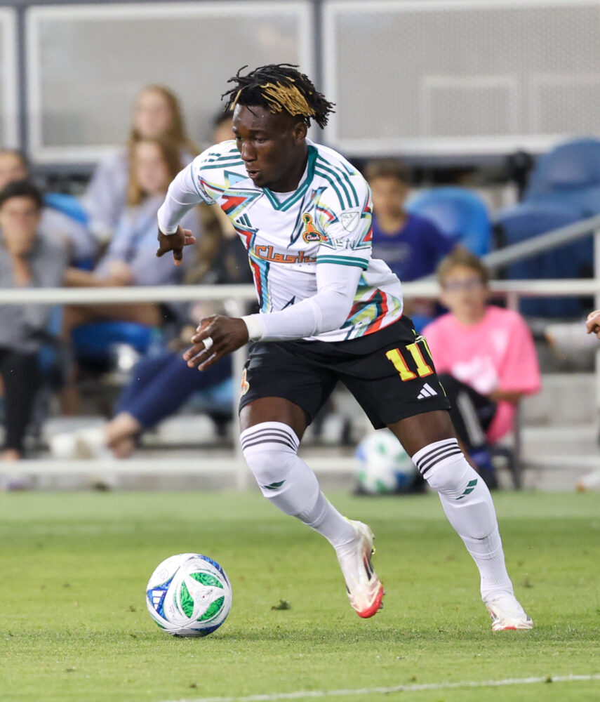 San Jose Earthquakes Defender OUSSENI BOUDA (11) during the MLS match between the San Jose Earthquakes and the Vancouver Whitecaps at PayPal Park in San Jose, California