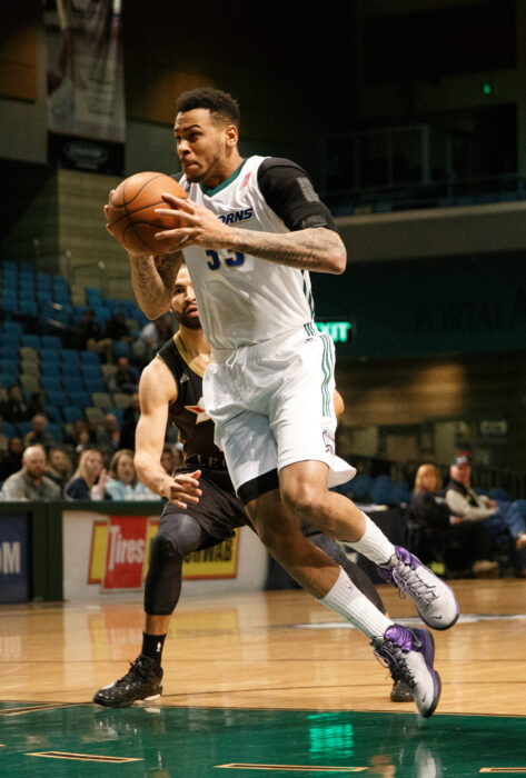 Reno Bighorn and Sacramento Kings Assignee ERIC MORELAND (33) drives to the hoop during the NBA D-League Basketball game between the Reno Bighorns and the Erie Bay Hawks at the Reno Events Center in Reno, Nevada.