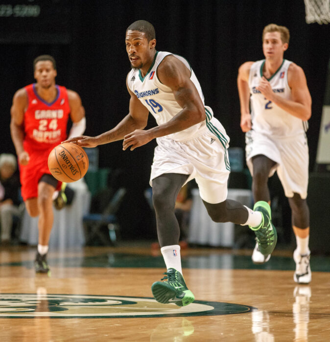 Reno Bighorn Guard DURRELL SUMMERS (19) drives the ball up the floor during the NBA D-League Basketball game between the Reno Bighorns and the Grand Rapids Drive at the Reno Events Center in Reno, Nevada.