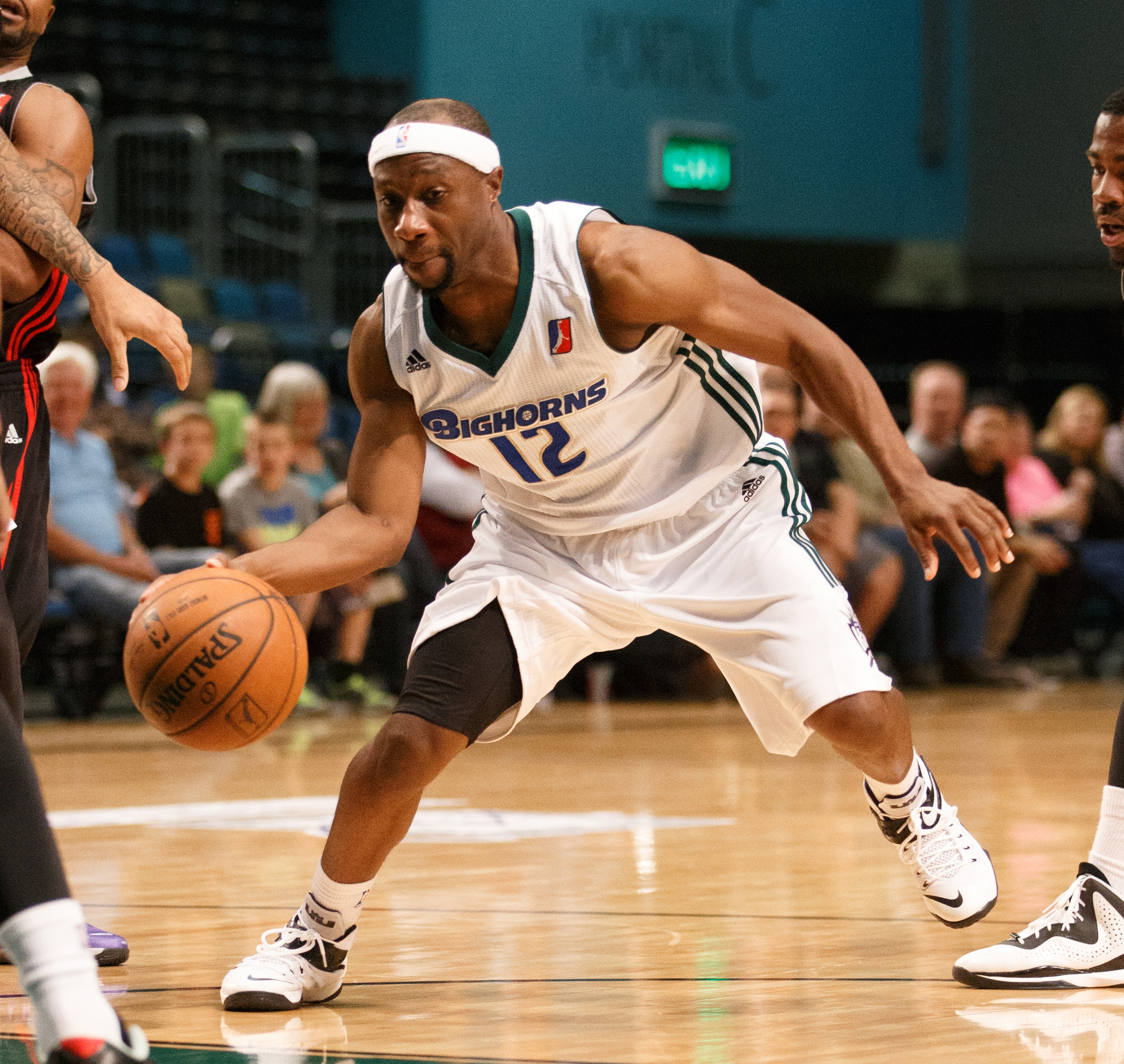 Reno Bighorn TAJUAN PORTER (12) drives during the NBA D-League Basketball game between the Reno Bighorns and the Idaho Stampede Drive at the Reno Events Center in Reno, Nevada.