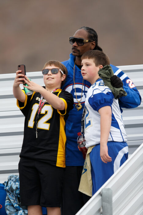 Bishop Gorman Dad, Snoop Dog taking a selfie with some fans during the NIAA State Championship Football game between the Bishop Gorman Gaels and the Reed Raiders at Damonte Ranch High School in Reno, Nevada.