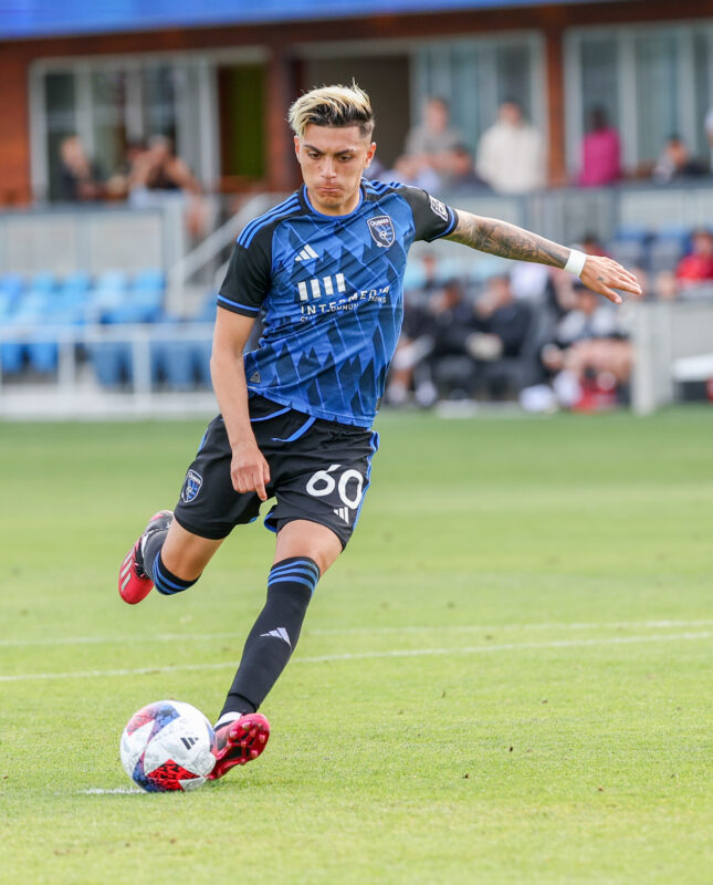 San Jose Earthquakes II Forward EDUARDO ‘LALO’ BLANCAS (60) shoots a penalty kick during the MLS Next Pro match between the San Jose Earthquakes II and the Tacoma Defiance at PayPal Park in San Jose, California