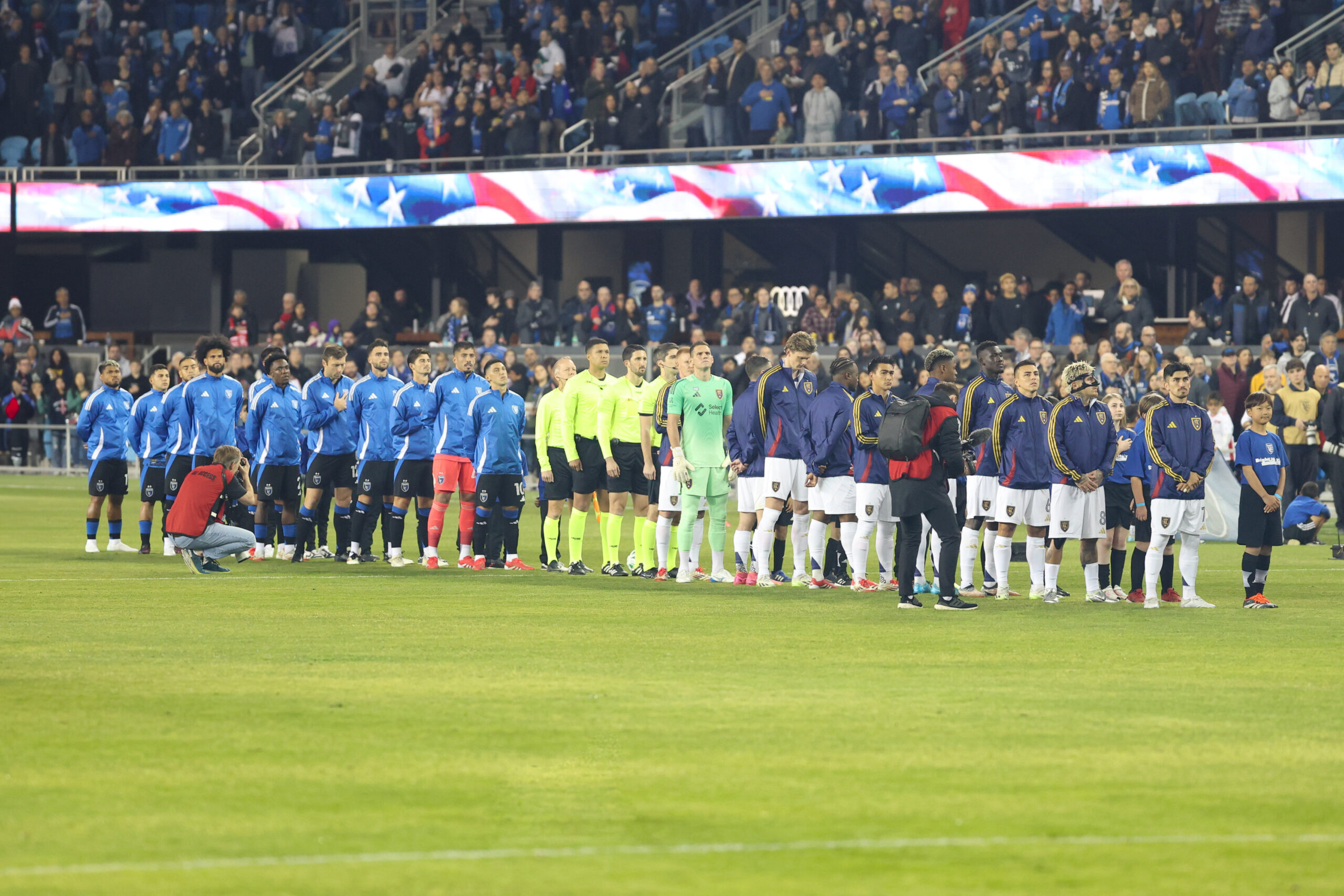 The San Jose Earthquakes host Real Salt Lake for the opening night of the 2025 Major League Soccer season with the National Anthem before the MLS match between the San Jose Earthquakes and Real Salt Lake at PayPal Park in San Jose, California
