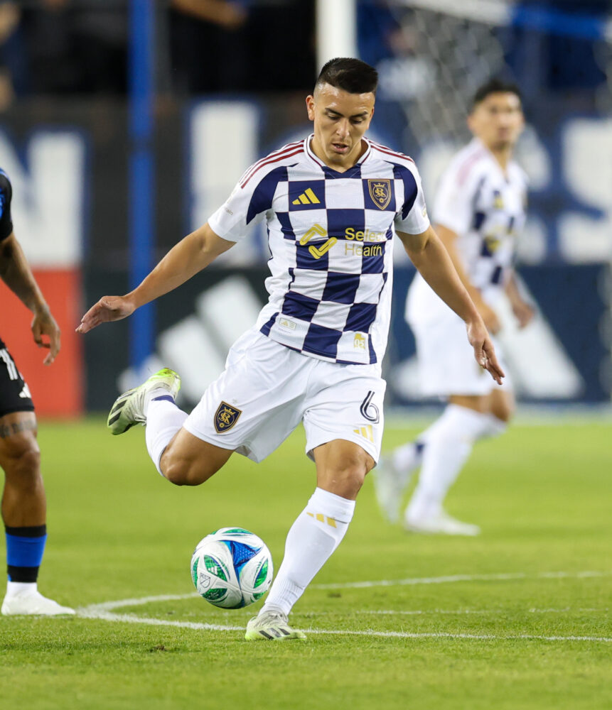 Real Salt Lake Midfielder BRAIAN OJEDA (6) crosses the ball during the MLS match between the San Jose Earthquakes and Real Salt Lake at PayPal Park in San Jose, California