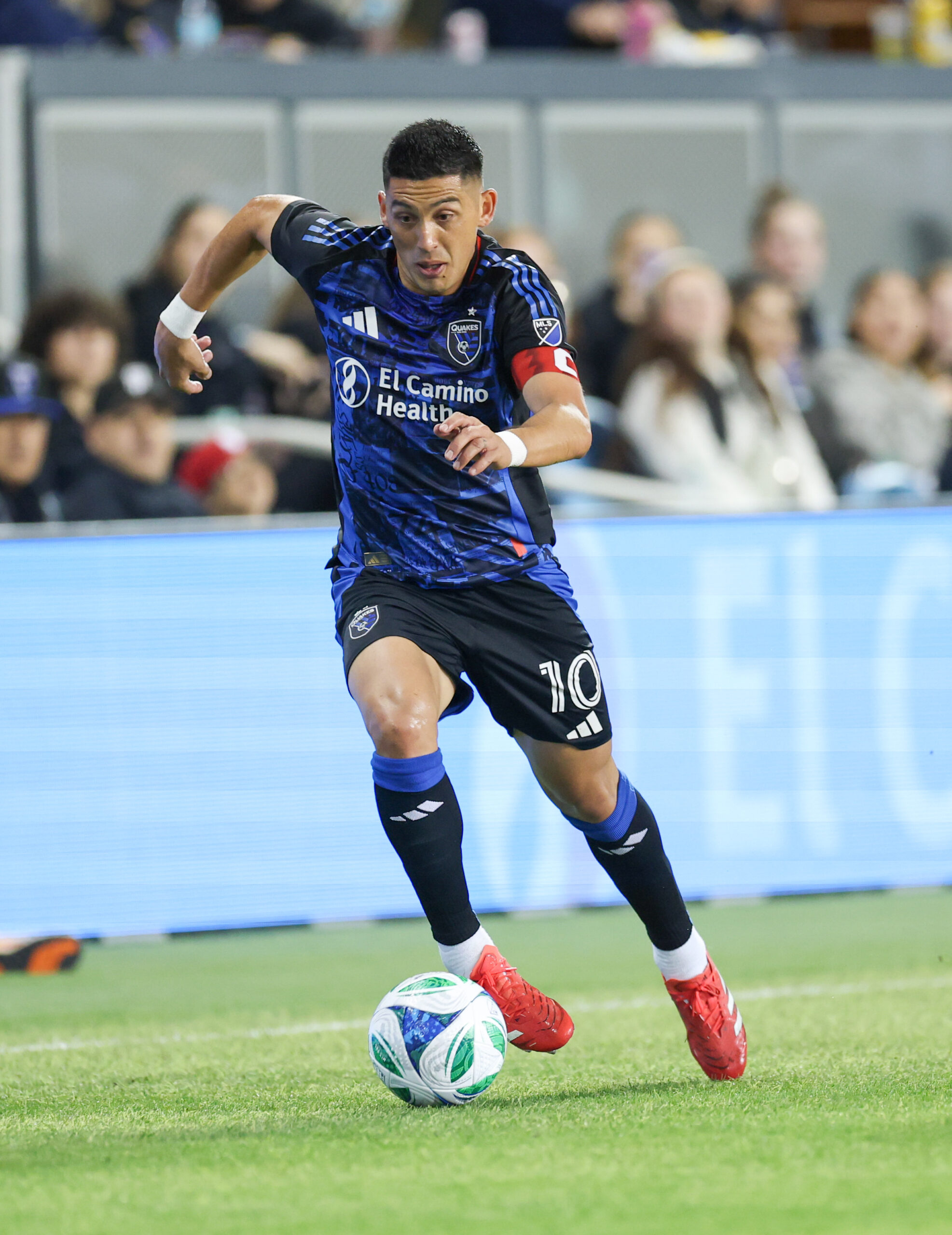 San Jose Earthquakes Midfielder CRISTIAN ESPINOZA (10) drives the ball up field during the MLS match between the San Jose Earthquakes and Real Salt Lake at PayPal Park in San Jose, California